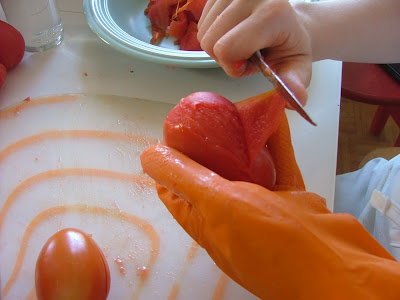 Stevie has mentioned a few times that she was interested in learning Italian (she comes from Italian stock), so we finally decided to do our first cena italiana this past week. The idea was simple: cook an Italian meal, drink Italian wine, and speak as much Italian as we could, pointing and miming our way through it. I enlisted Toni to join us to keep the conversation going and to be an additional teacher in the room. Lesson #1 went well, with Stevie learning and recording a few key terms and present tense verbs in a little notebook I gave her, while assuming her usual duties of chef/sous-chef combo when we cook together.